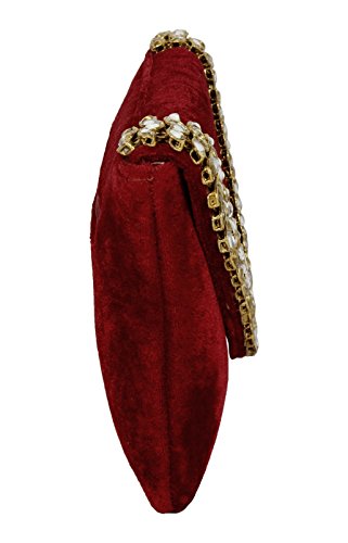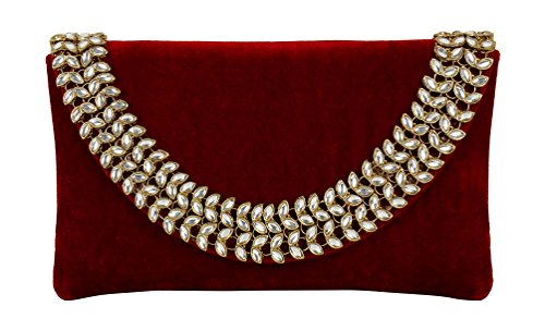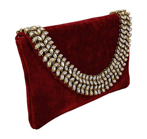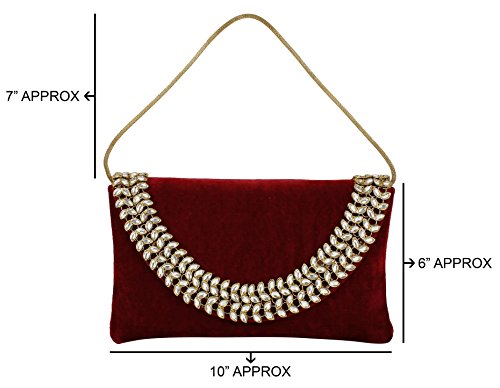 (Purse Collection)/Accessories/Handbags/DIRECT FROM USA/Purse Collection Antique Maroon Bridal Clutch With Kundan Stone For Women's