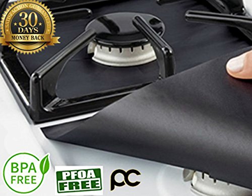 Gas Range Protector (4 Pieces) - Heavy Duty, Double Thickness, Reusable, Non-Stick Gas Range Protectors | Safest On The Market, 100% Certified BPA & PFOA Free (10.6” x 10.6”) – NEW & IMPROVED 2017