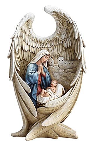MOTHER MARY WITH BABY JESUS IN ANGEL WING RESIN NATIVITY STATUE FIGURINE, 10 INCH