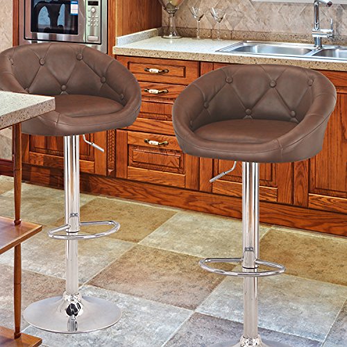 -. Brand : Joveco -. Feature : 360 degree swivel adjustable low back bar stools; A set of TWO Bar stools / Leatherette covered foam cushion adds comfort / Chrome base with 15.15" rubber ring bottom, build in footrest / Seat size: 20.86" x 18.50" Seat height: 31.10" - 39.76" / Stylish, elegant, and great features for your seating needs -. Label : Joveco -. Manufacturer : Joveco -. Model : JCH410-P -. MPN : JCH410-P -. PartNumber : JCH410-P -. ProductGroup : Furniture -. ProductTypeName : HOME_FURNITURE_AND_DECOR -. Publisher : Joveco -. Studio : Joveco -. Title : Joveco 360 Degree Swivel Adjustable Button Tufted Bar Stools - Set of 2