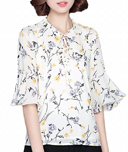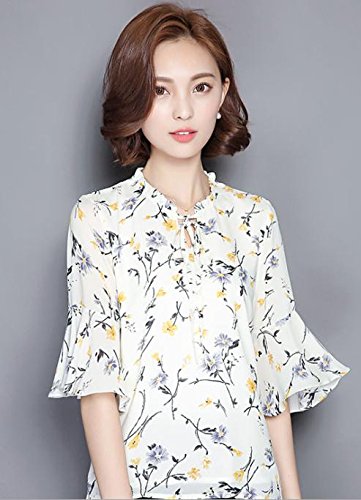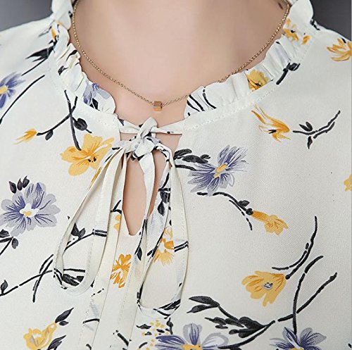 -. Title : (TERA Dream) ブラウス 半袖 花柄 おしゃれ フリル袖 リボン ボリューム ゆったり レディース (XL, オフホワイト)