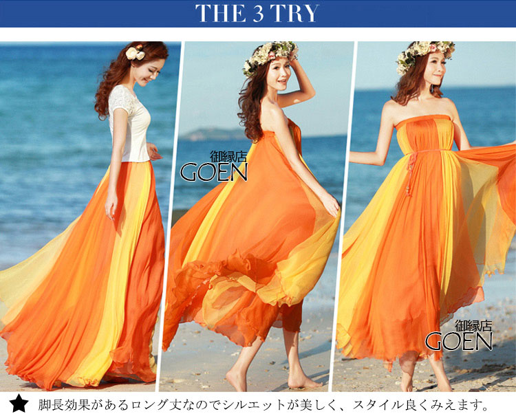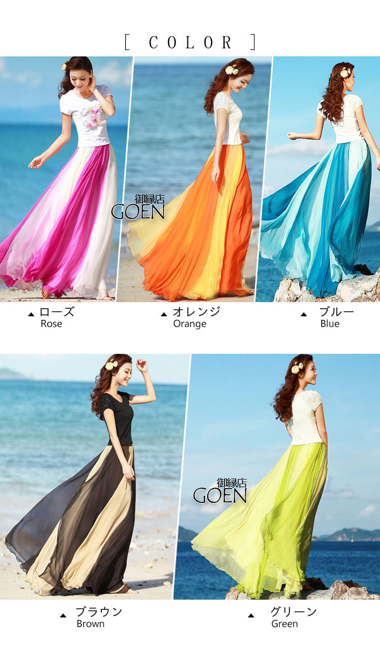 ※ 商品名 シフォンスカート/マキシスカート/バイカラー/フレア/ロングスカート/ボヘミア/マキシスカート/3WAY/シフォン スカート/ウエストゴム/ふんわり
