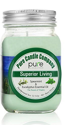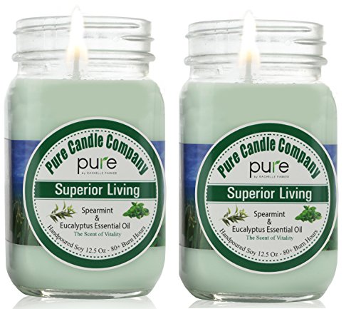 PURE Naturally Scented Aromatherapy Candles Gift Set, 2-Pack Spearmint Eucalyptus Essential Oil Soy Candles Large Mason Jar, 12.5 oz. Natural Home Fragrance Candle, Best Gift for Women!