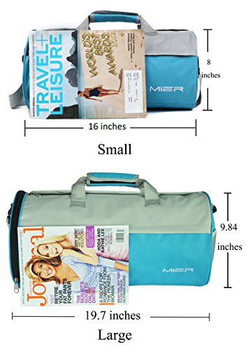 -. Brand : MIER -. Department : unisex-adult -. Feature : A front zipper pocket, one main compartment, with a mesh pocket on the end for additional storage, the other end a shoes compartment, a inner side pocket / Adjustable, removable shoulder strap for premium fit and comfort, Padded wrap on carry handles for extra comfort / Large size dimensions:19.7(lenght)*9.84(height)*9.84(width);Small size dimensions:16(lenght)*8(height)*8(width) / Sturdy and refining design,high quality smooth SBS zipper and more convenient closure for shoes compartment / Design for Gym, Sports, Travel, Carry-on, Lage, Camping, Hiking, Weekend Adventures and More -. Model : MIERLIFE-SPO001 -. MPN : MIERLIFE-SPO001 -. PackageQuantity : 1 -. PartNumber : MIERLIFE-SPO001 -. ProductGroup : Apparel -. ProductTypeName : LAGE -. Title : MIER Barrel Travel Sports Bag for Women and Men Small Gym Bag with Shoes Compartment