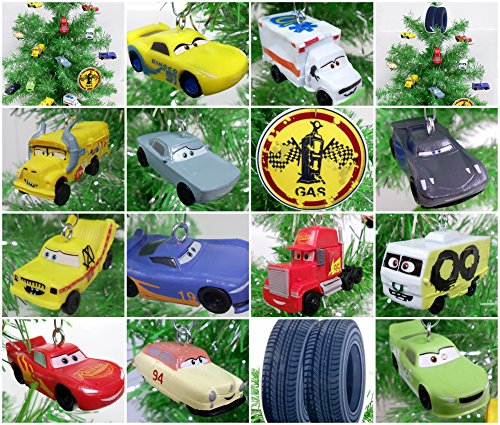 Cars 3 McQueen and Gang 14 Piece Christmas Tree Ornament Set Featuring Lightning McQueen, Cruz Ramirez and Friends - Around 2" to 3" Long with Unique Shatterproof Design