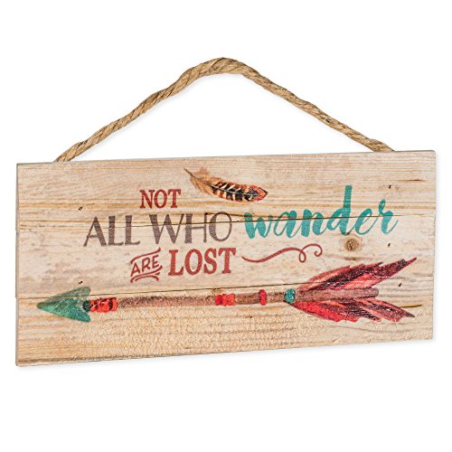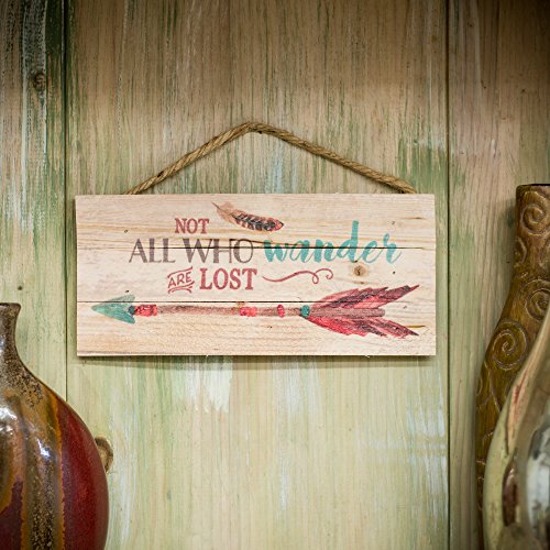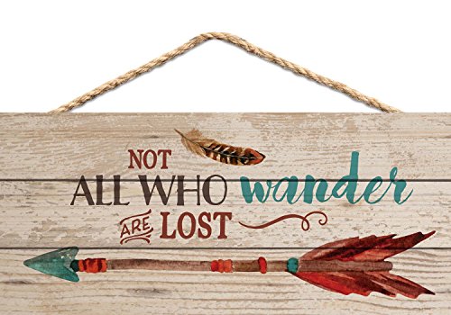 Not All Who Wander are Lost Arrow Feather 5 x 10 Wood Plank Design Hanging Sign