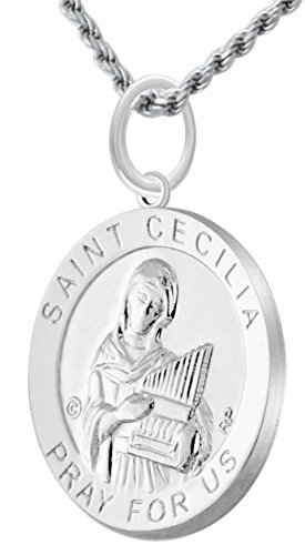 -. Title : Polished 3/4in 0.925 Sterling Silver Saint St Cecilia Medal Pendant Necklace