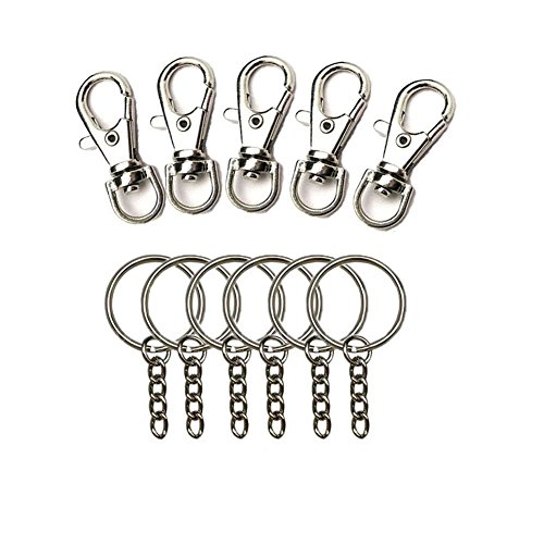 RenBa100 Pcs Metal Swivel Clasps Metal Lobster Claw Clasp Hook Key Rings and 1 inch Keychain Make Your Own Key Ring