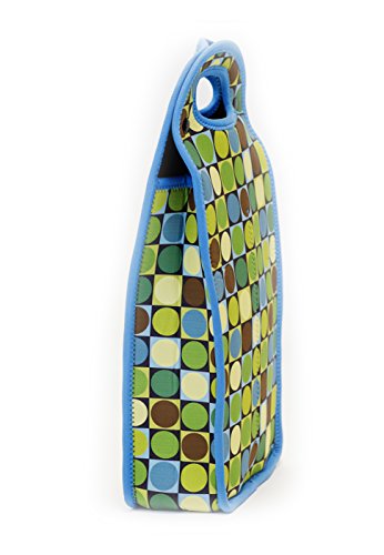 Zees Inc Pocket Bottles Neoprene Double Bottle Wine Tote, Green/Blue/Brown