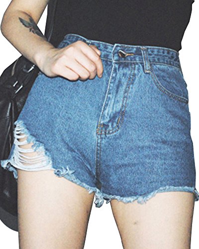-. Title : SaiDeng Damen Sommer Retro Denim Jeans Hohen Taille Loecher Shorts Hot Pants
