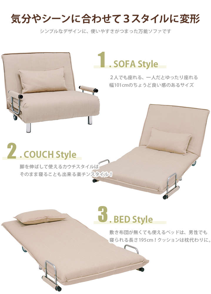 ●シーンに合わせて使用できる、おしゃれかわいいソファベッド。キャスター付で移動もラクラク