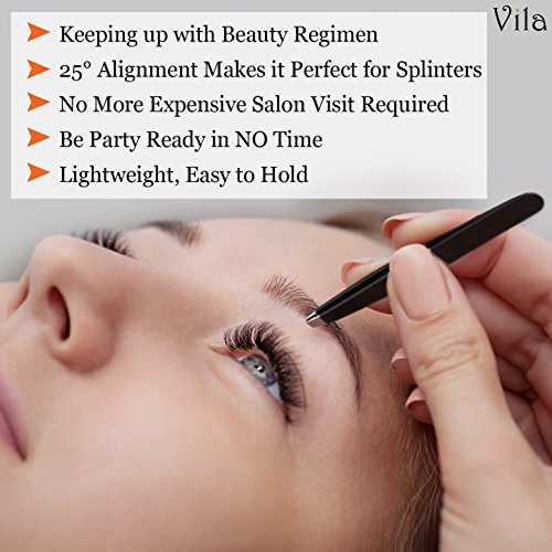 Tweezers for Eyebrows --- Stainless Steel Slant Tip Plucker - Useful for Pulling Splinters, Ingrown Hair, or Picking up Tiny Objects - 25-Degree Slanted Tip -...