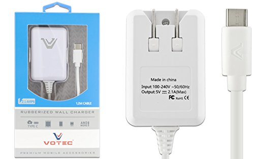 -. Feature : Soft Rubberized Home Wall Charger / Type C Reversible Connector / 2100mA, 2.1AMP / Premium Internal Components / 1.2M (3.9FT) Cable, White LED