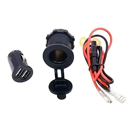 -. Feature : Fit for: Universal for 12-24V motorcycle motor vehicles / The unit can be connected to any 12-24 volt DC electrical system,Universal fits for 12V Vehicle, Motorcycle, ATV, Boat, Car or Marine. / Two USB auxiliary sleeve is ideal for driving and / or iPod / MP3 player, USB charging portable devices, GPS, iPhone, And other similar devices,Can be used as GPS charging, cell phone charger, Car MP3 power supply, car vacuum cleaner, car tire inflation power, etc. / Easy to install, 5v the output port to keep your smart phone, GPS, MP3 or other doo-dad blocked it with a waterproof cover elements,Accept two USB devices in the same time with the dual USB adapter. / Package includes: 1x Cigarette Lighter Socket + 1x Dual USB Port Charger Adapter + Set of Connecting Wires with built-in fuse