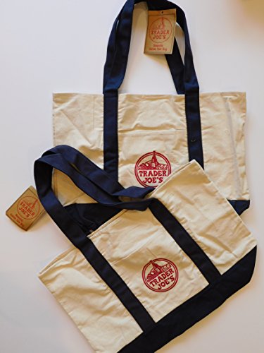 Large Trader Joe's Shopping Bag Tote Beach Bag Book Bag Cotton Canvas Embroided