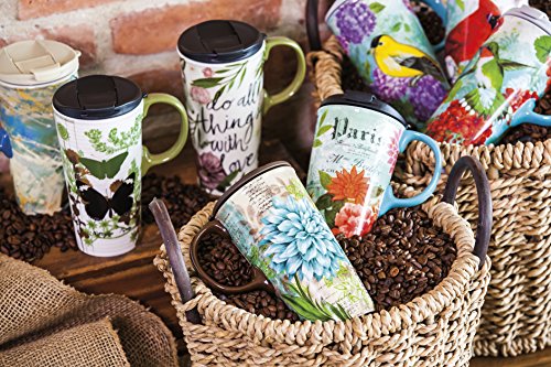 Cypress Home's Ceramic Travel Coffee Mug or Tea Cup is the perfect everyday beverage holder - The cup is adorned with charming, colorful artwork - Packaged in a coordinating gift box, making it a great present for family and friends