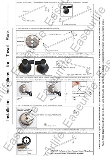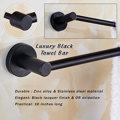 Easeurlife Towel Bar Rack Wall Mounted Washcloth Holder for Shower Towel Hanger Bathroom Extra Long 16 inch (Elegant Black)