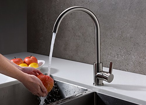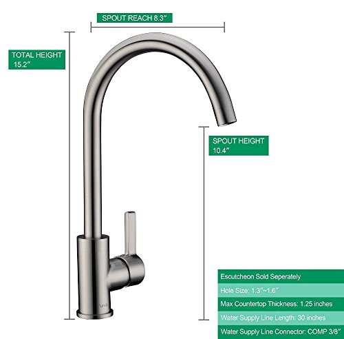 Purelux Replacement Single Handle Arc Design Swivel Spout Kitchen Sink Faucet, Brushed Nickel 5 YEAR WARRANTY