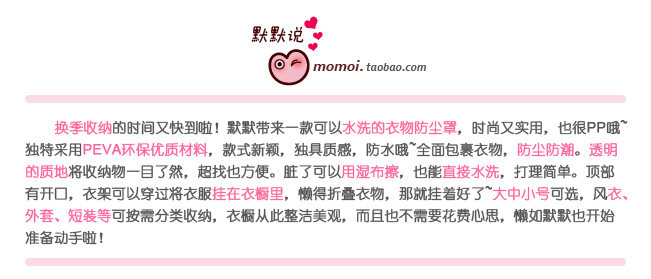 寶貝名稱時尚可水洗透明衣物防塵罩 材   質 PEVA