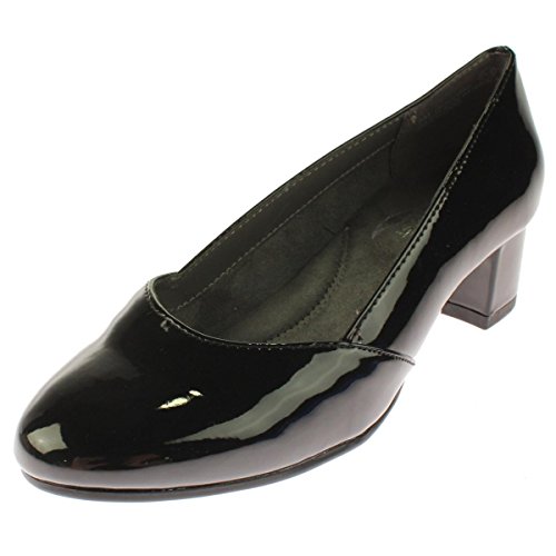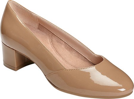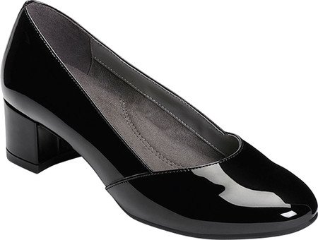 Product Description Classic low pump speaks louder than words with its chunky 1¾” heel, slightly tapered toe, overall glossy finish and welcoming heel rest technology. the look is pure sophistication with a practical heel, and the feel is total comfort ? from the memory foam footbed to the flex bottom sole that bends easily as you step. 0