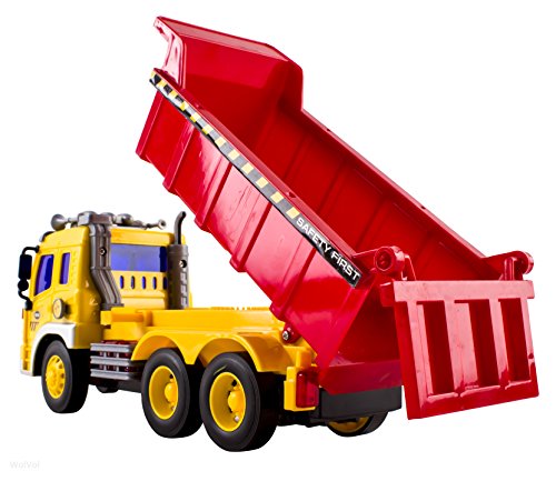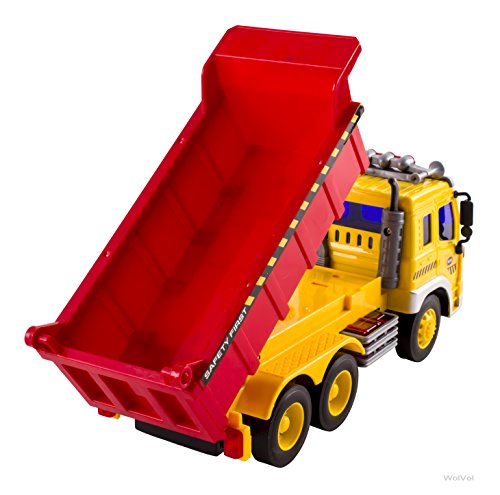 The WolVol dump truck toy is ready to run out of the box. Pull out the plastic piece from the battery area so the batteries would activate. Press the button on the side of the cab so the lights and sounds will perform. An extra plus is the installed friction on the wheels which allows the truck to move ahead on its own once you push it a little. Great gift toy for the kids who love dump trucks.Feature
