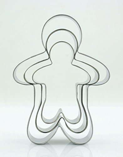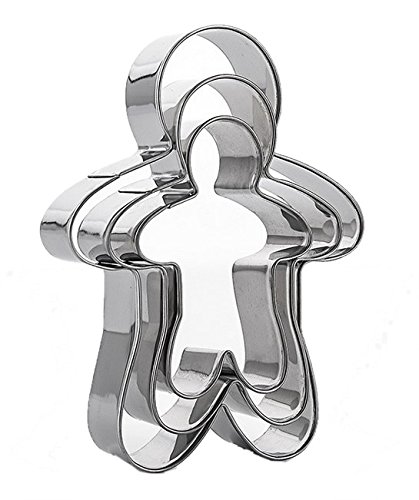 3-Pk Pastry Cookie Fondant Cookie Cutters Mold - Stainless Steel (Gingerbread), 3.2"/4"/4.8"H, Gingerboy