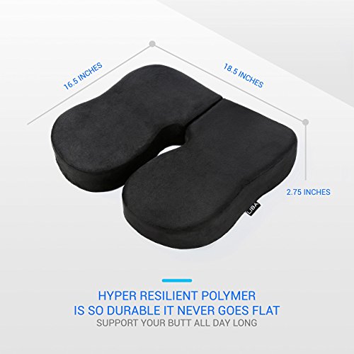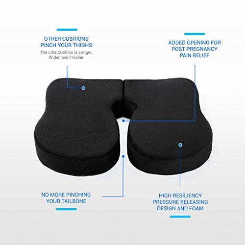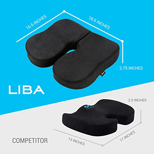 Ever thought about how many hours we spend sitting in a day? We sit during meals, at work, at home, during commutes, traveling on long flights and more. If you add up all those hours and multiply it by your entire lifetime, you'll be convinced to buy the best seat cushion available. ? When you spend most of your day sitting, your back starts to slouch, your tailbone becomes prone to pain, your hips and legs start to numb or hurt because of soreness and poor circulation. ? This is then why the LiBa seat cushion will become an essential fixture on your armchair, couch, dining chair, office chair or any type of seating with a flat surface. ? Size: 16.5" x 18.5" x 2.75" ? Use for: - Pain or numbness from sitting for long periods of time