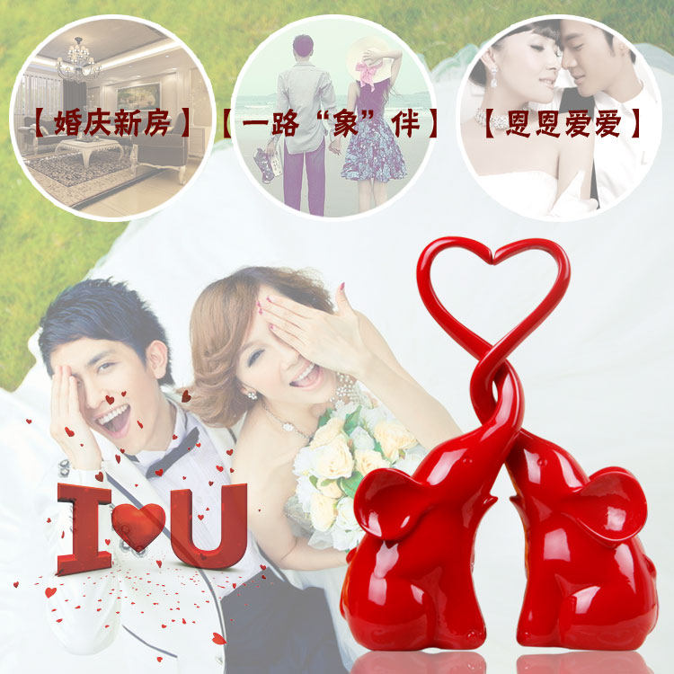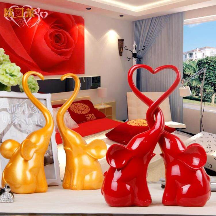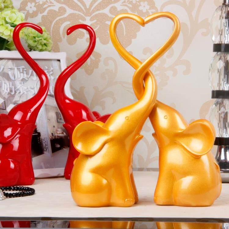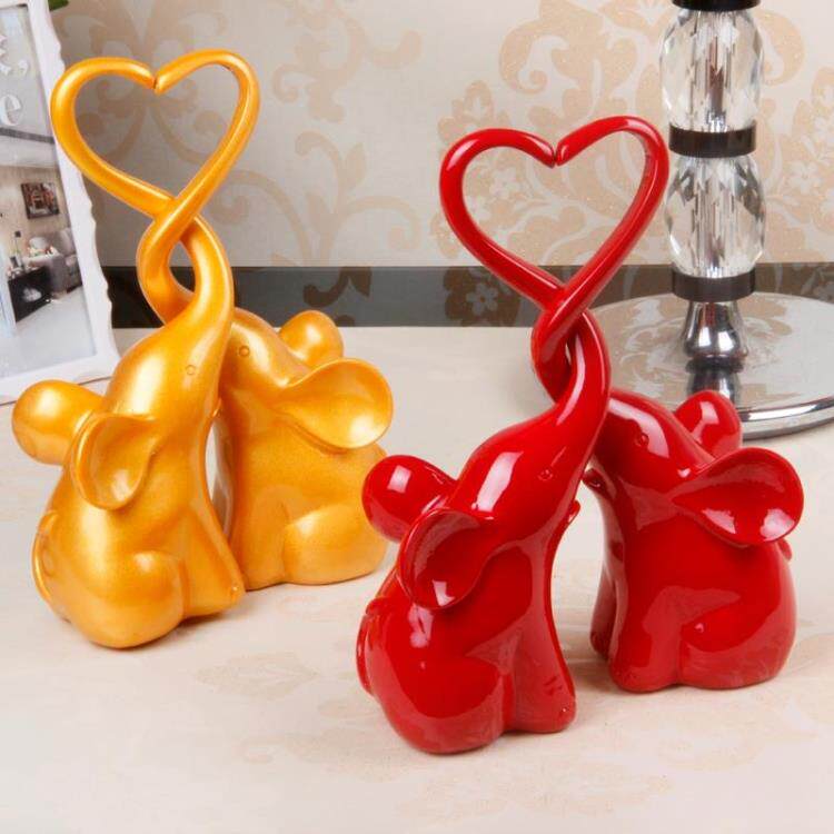 客厅电视柜情侣象摆件送闺蜜结婚礼物婚庆礼物家居装饰树脂工艺