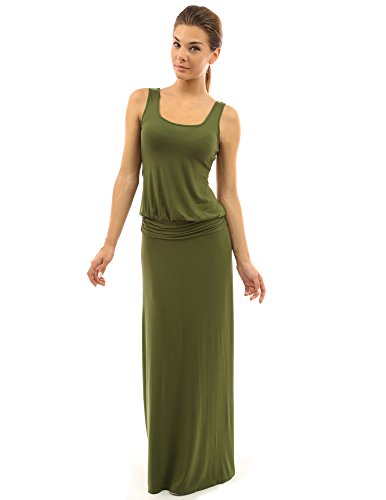 Cotton Blend Sleeveless Stretch Summer Blouson Maxi Dress. Model in pictures is 5 feet 8 inches (173cm) tall wearing a pair of flat sandals.