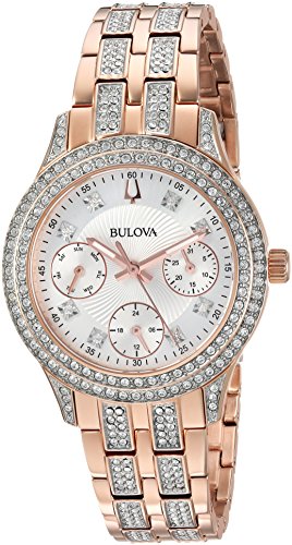 292 swarovski crystals on bracelet, bezel and silver-white dial, six-hand multifunction movement