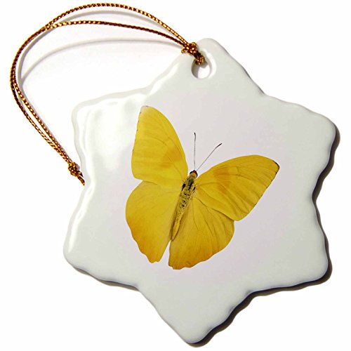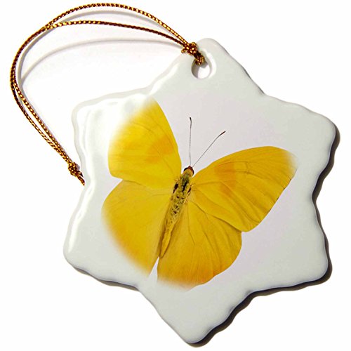 3dRose orn_33264_1 Butterfly Yellow Snowflake Decorative Hanging Ornament, Porcelain, 3-Inch
