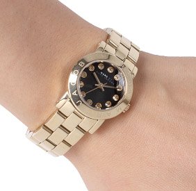 콜론이라고 한 케이스와,절묘한 촉감이 인기의 A me 시리즈.조금 어른을 느끼게 하는 골드 케이스 사님에게12포인트의 크리스탈 스톤을 대접했 멋진 컬러링이 특징입니다.마크제이콥스다운 심플한디자인가 캐주얼로부터 포멀인 스타일까지 폭넓게 모두 하실 수 있는.