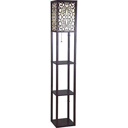 SH Lighting 6958BR-A 63"H Wooden Shelf Floor Lamp with Floral Shade Panels, Brown