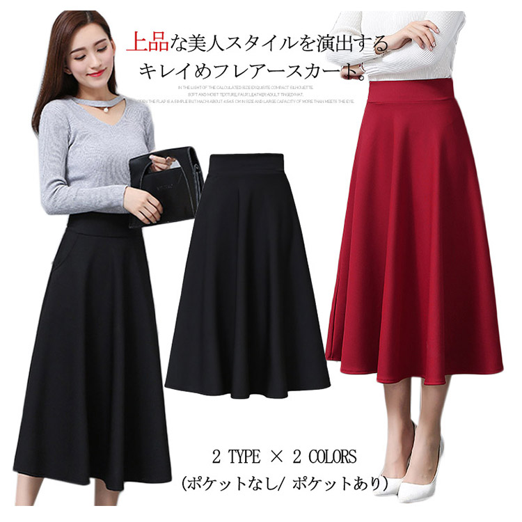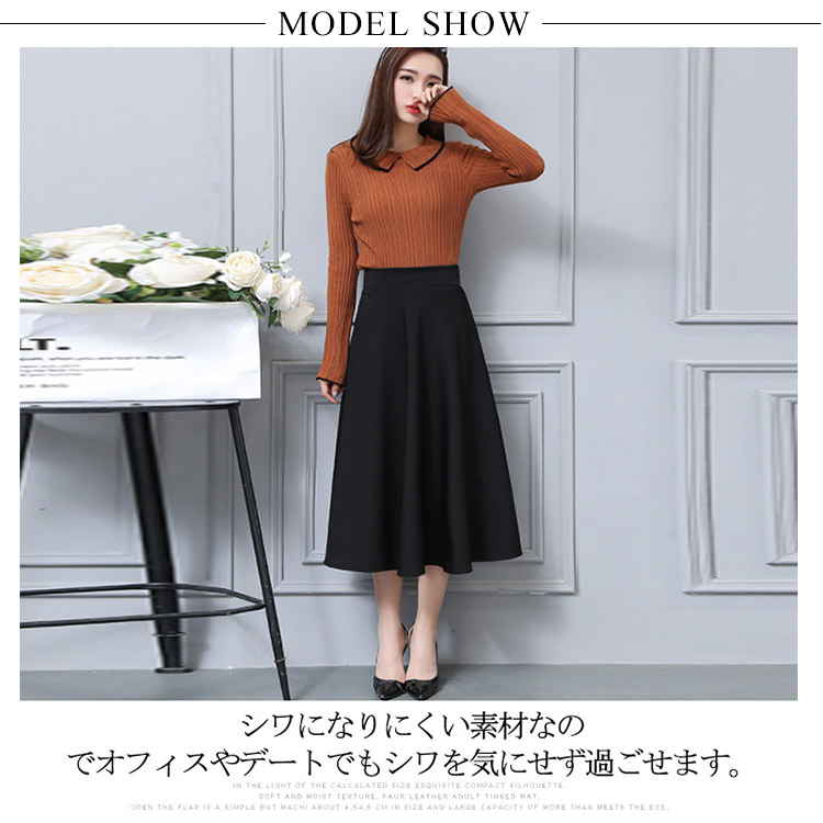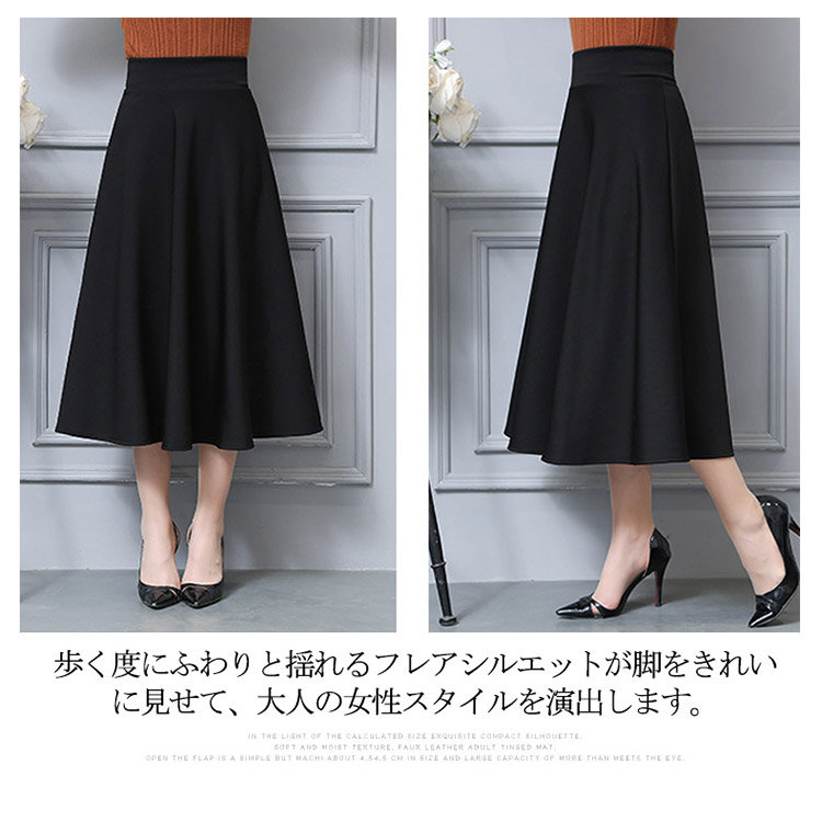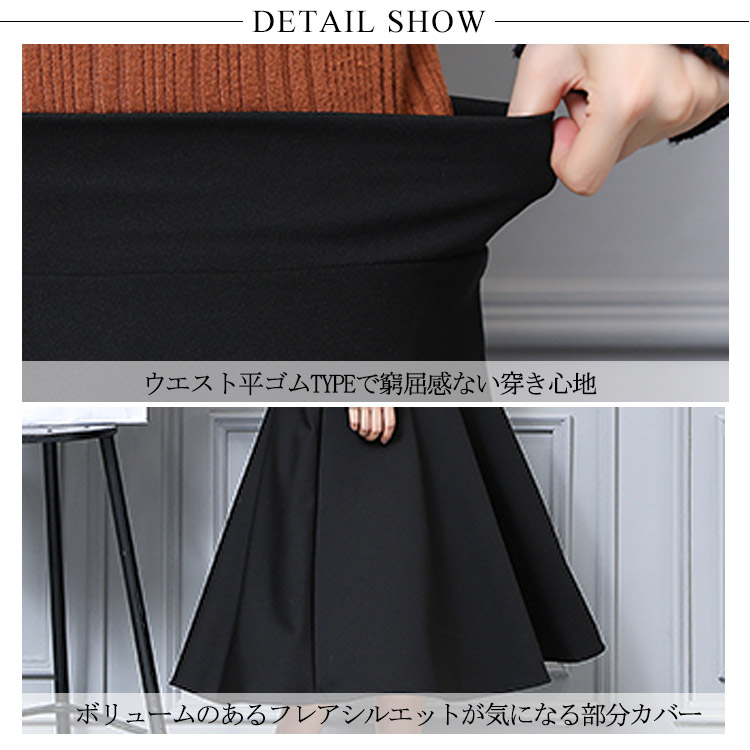 | 上品な美人スタイルを演出するキレイめフレアースカート。シワになりにくい素材なのでオフィスやデートでもシワを気にせず過ごせます。歩く度にふわりと揺れるフレアシルエットが脚をきれいに見せて、大人の女性スタイルを演出します。ハイウエストデザインでトップスinにしてすっきりとしたくびれラインが見えます。 | |