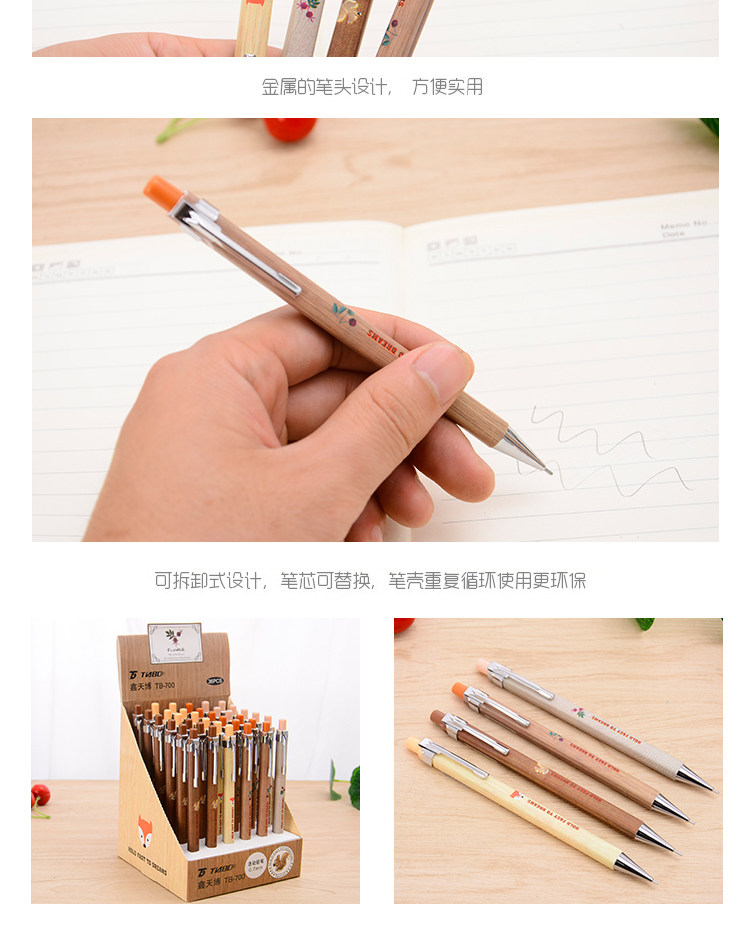 小学生写字练字自动铅笔0.7可换自动笔芯写不断铅笔原木环保