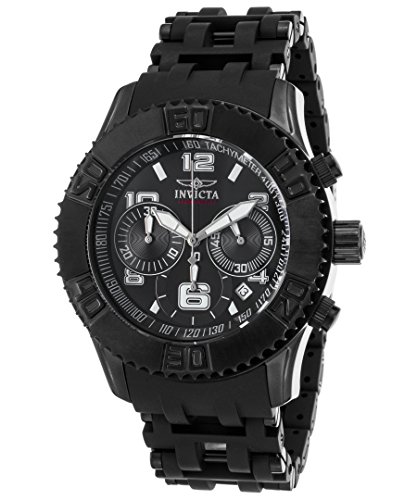 -. Binding : Watch -. Brand : Invicta -. Color : black -. Department : mens -. EAN : 0886678274796 -. Feature : Chronograph functions with 60 second, 30 minute and 1/10 of a second sub dials; date window between 4:00 and 5:00; tachymeter; flame fusion crystal / Black dial with silver tone and white hands and white hour markers and Arabic numerals; luminous; black ip stainless steel case; black polyurethane strap with black ion-plated stainless steel links / Quartz Movement / Case Diameter: 50mm / Water resistant to 100m (330ft): in general, suitable for swimming and snorkeling, but not diving -. Label : Invicta -. Manufacturer : Invicta -. Model : 22454 -. MPN : 22454 -. PackageQuantity : 1 -. PartNumber : 22454 -. ProductGroup : Watch -. ProductTypeName : WATCH -. Publisher : Invicta -. Studio : Invicta -. Title : Invicta Men's 'Sea Spider' Quartz Stainless Steel and Polyurethane Casual Watch, Color:Black (Model: 22454) -. UPC : 886678274796
