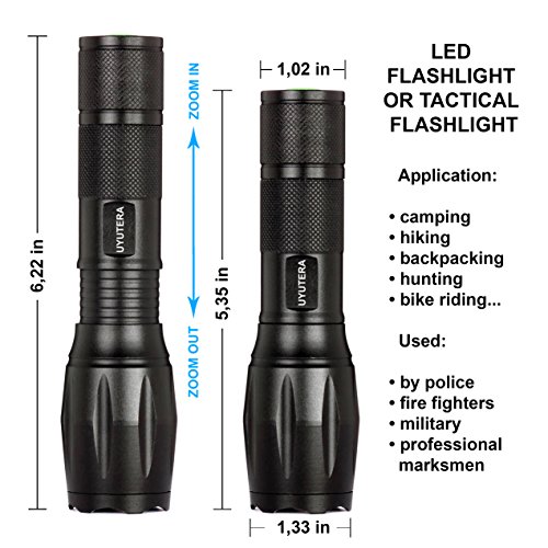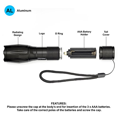 UYUTERA Brightest LED Waterproof Flashlight – Ideal as Tactical or Survival Flashlight with Zoomable Focus & Multiple Light Modes – Heavy-Duty Build & Easy to Use Design
