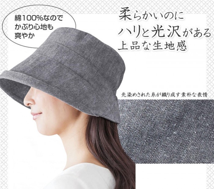 | 歴史ある播州織の生地でつくられた上品な帽子。柔らかいのにハリのある独特の生地感。一本一本先染めされた糸が生み出す、奥行きのある表情を楽しめます。頭の形になじみやすく、軽いのでノンストレス。折りたたんで持ち歩きOK。 |