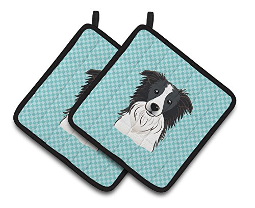 Caroline's Treasures Checkerboard Blue Border Collie Pair of Pot Holders BB1179PTHD, 7.5HX7.5W, Multicolor