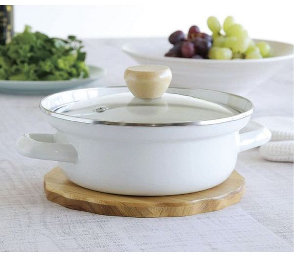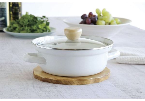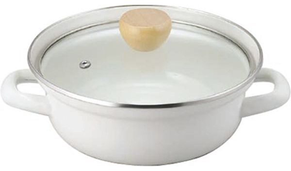 ●材質:本体/ほうろう用鋼板(底の厚さ:0.6mm)、フタ/全面物理強化ガラス、フチ/ステンレス、つまみ/天然木
