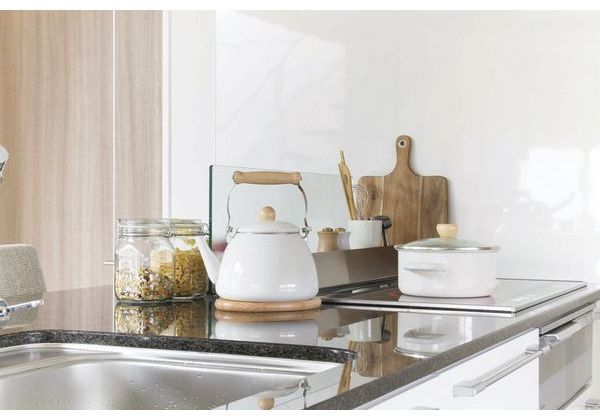 ●「見せるキッチン」片付けるより見せておきたくなる清潔感のある白いホーローたち。