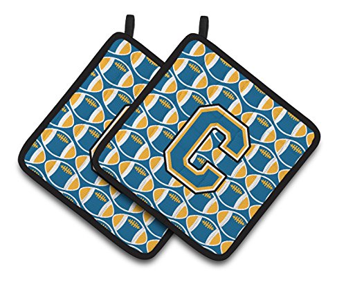 Caroline's Treasures Letter C Football Blue & Gold Pair of Pot Holders CJ1077-CPTHD, 7.5HX7.5W, Multicolor