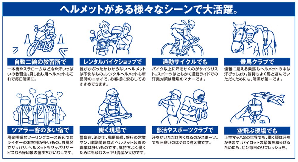 - Corresponds to each helmet shape such as full face, jet type, half type, etc.