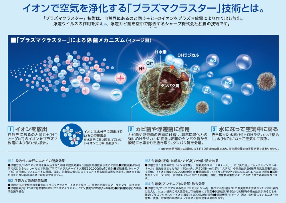 Sharp Corporation's proprietary technology that suppresses the action of floating virus and removes floating mold bacteria in the air.