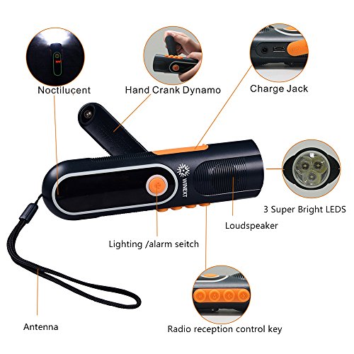 No batteries required! Built in 800mAh lithium battery equip with white LEDs, our high quality hand crank emergency flashlight is ideal for disaster preparedness and severe weather conditions.