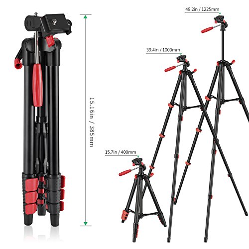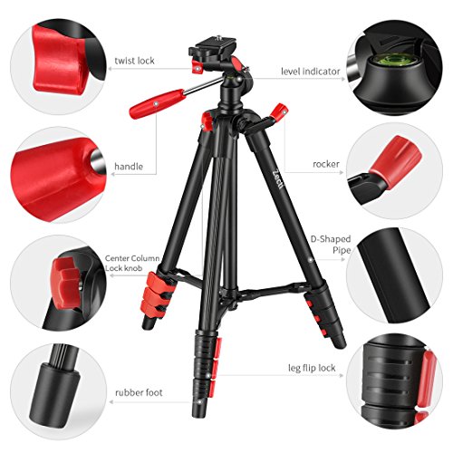 3-Way Head: the tripod’s 3-way head support for 90 lateral vertical shooting, 180 degree tilt angle adjustment and 360 degree panoramas. You can get any orientation that you want.