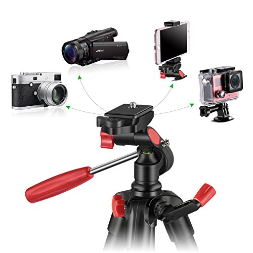 This lightweight travel tripod can be applicable for smartphone adapters( included), digital cameras, ILDC, sport cameras, gopro, telescope and etc.