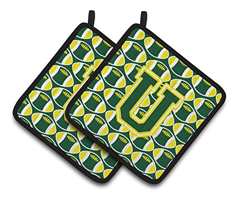 Caroline's Treasures Letter U Football green & Yellow Pair of Pot Holders CJ1075-UPTHD, 7.5HX7.5W, Multicolor