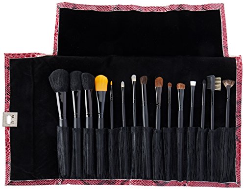 Crown Brush 15 Piece Pro with Designer Case Brush Set, Pink
