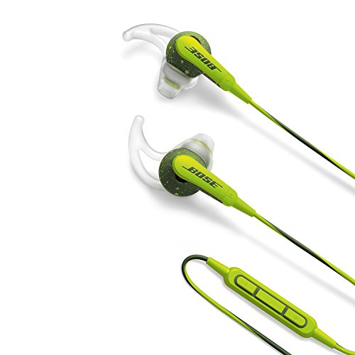 Bose Sound Sport in-ear headphones deliver deep, clear sound for the music you love, with a durable design that stands up to the rigors of your day. Exclusive TriPort technology provides crisp highs and natural-sounding lows, while acoustic ports are positioned to resist sweat and weather, and hydrophobic cloth keeps moisture out. Proprietary Stay Hear tips conform to your ears' shape, so they stay comfortably in place all day long. They come in a variety of colors to match your style: Charcoal, Frost, Energy Green, Power Red or Neon Blue. They even include a matching carrying case for storage and added protection. And an inline microphone and remote make for easy switching between calls and music with select iPhone models. Meet the headphones engineered to go wherever life takes you. Included: Sound Sport in-ear headphones; 3 pairs Stay Hear tips (S, M, L); carrying case; clothing clip.Feature